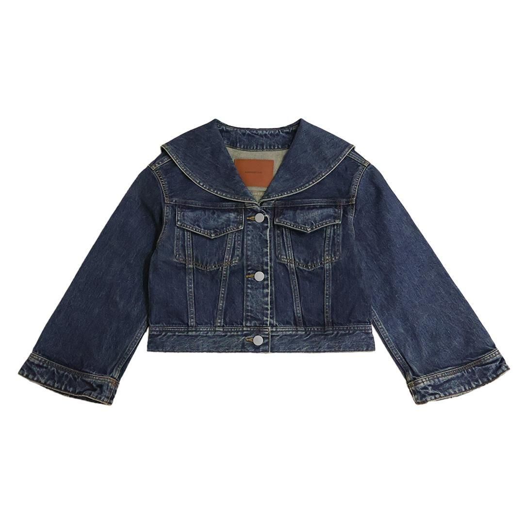 人気のセーラークロップデニムジャケットに新しくインディゴユーズド加工タイプが登場!