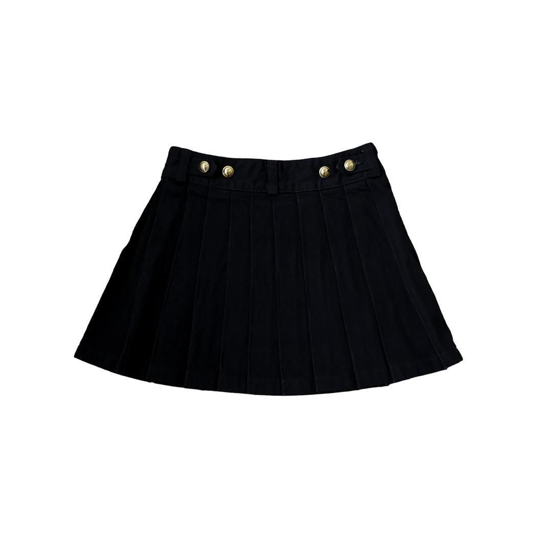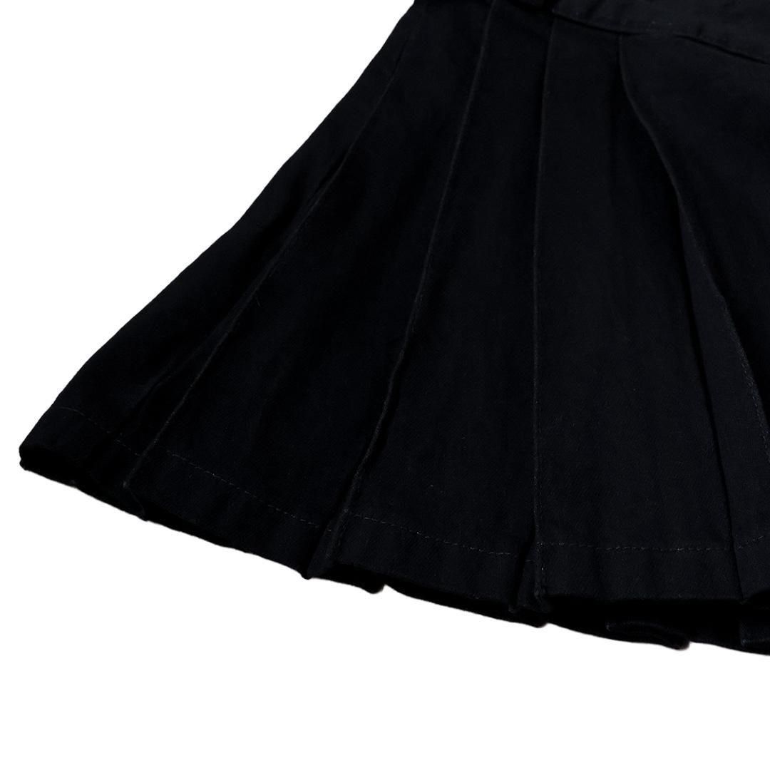 深みのあるブラックデニムを使用したミニ丈プリーツスカート。