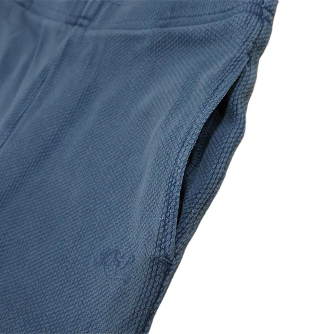 伝統的な幾何学模様の美しい一重刺し子生地を使用したピュアスウェットパンツのインディゴタイプ。