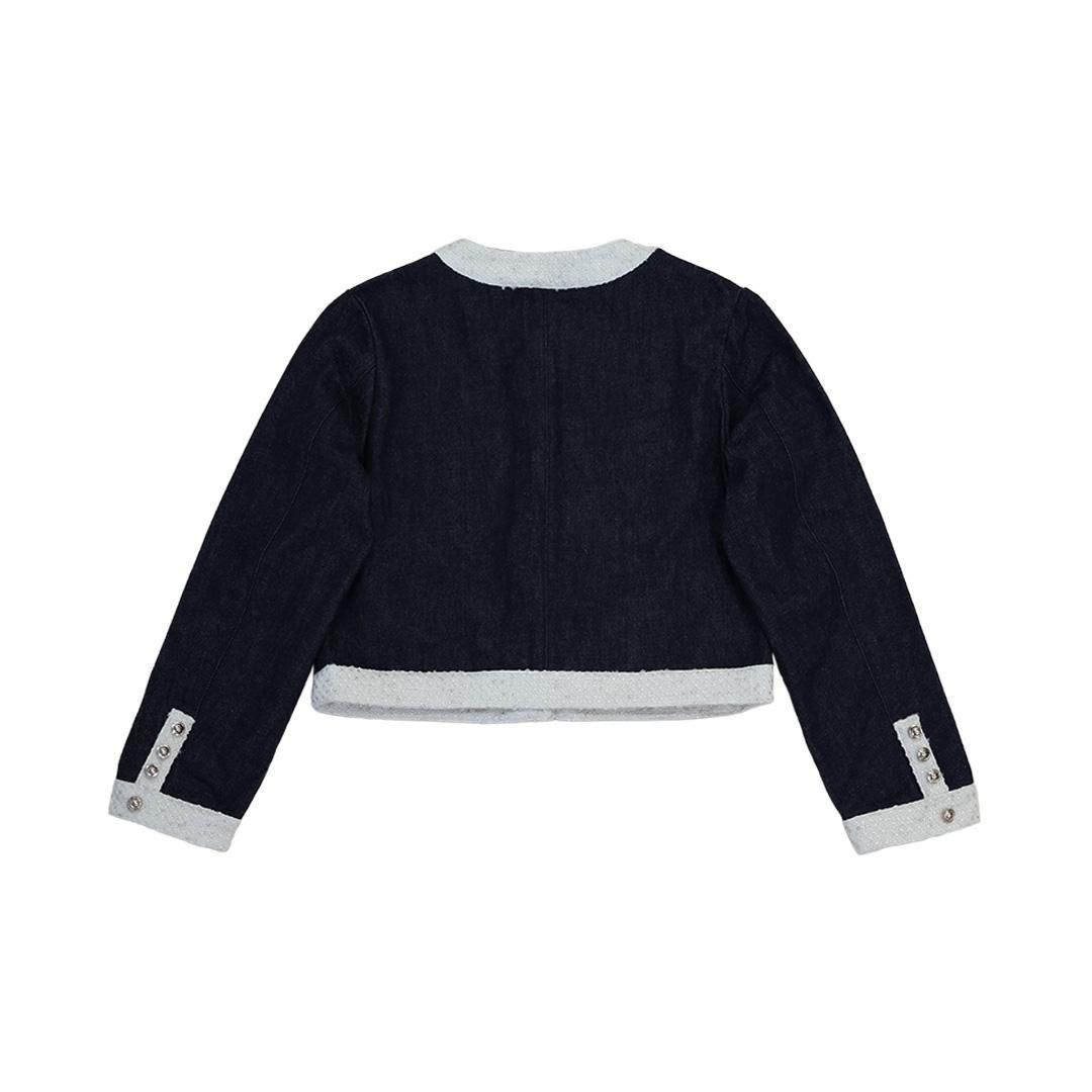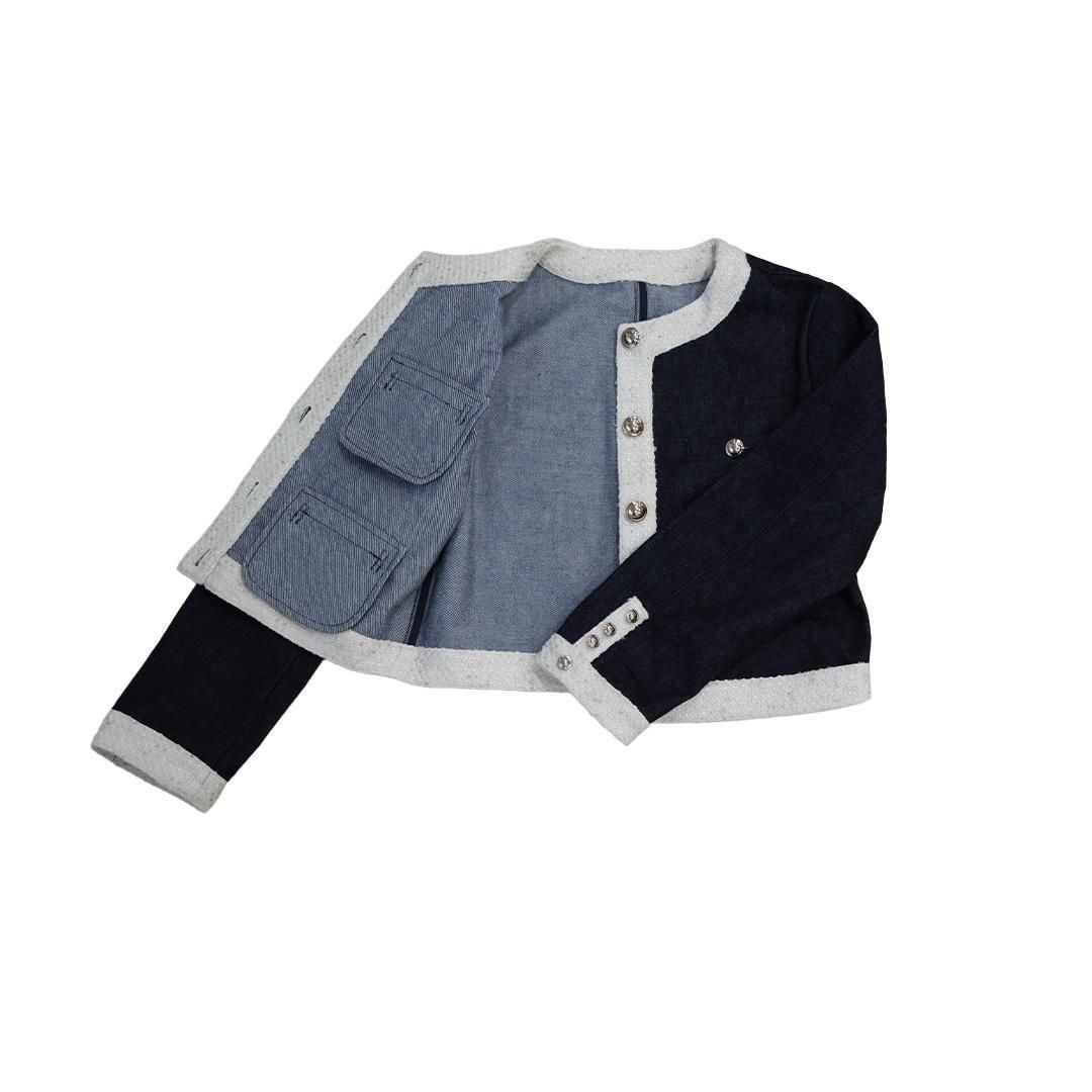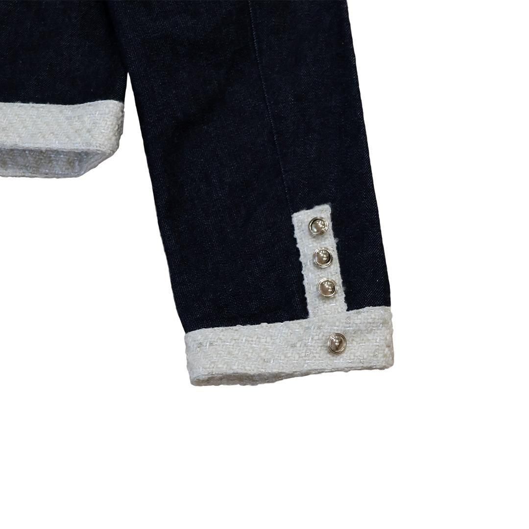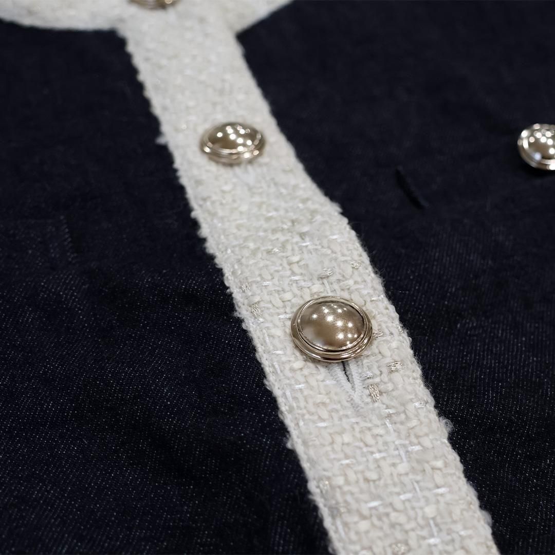 デニムとツイードの組み合わせでカジュアルながらラグジュアリー感を演出したツイードジャケットのインディゴタイプ。